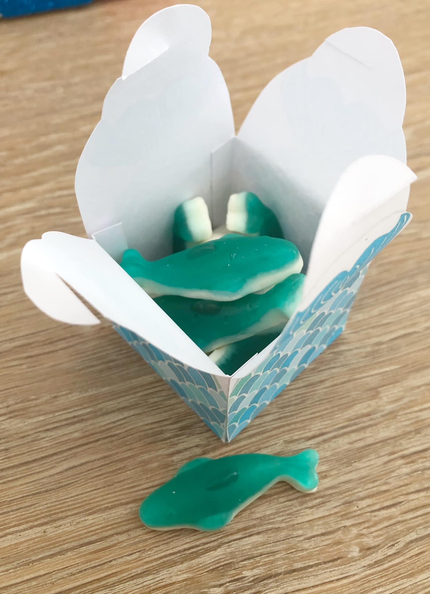 Option 2: Party bag with scrunchie and shell box with shark gummies – R 60